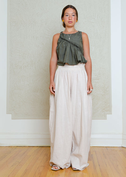 Ganni Gathered Tank Top (Khaki Silk/Cotton)