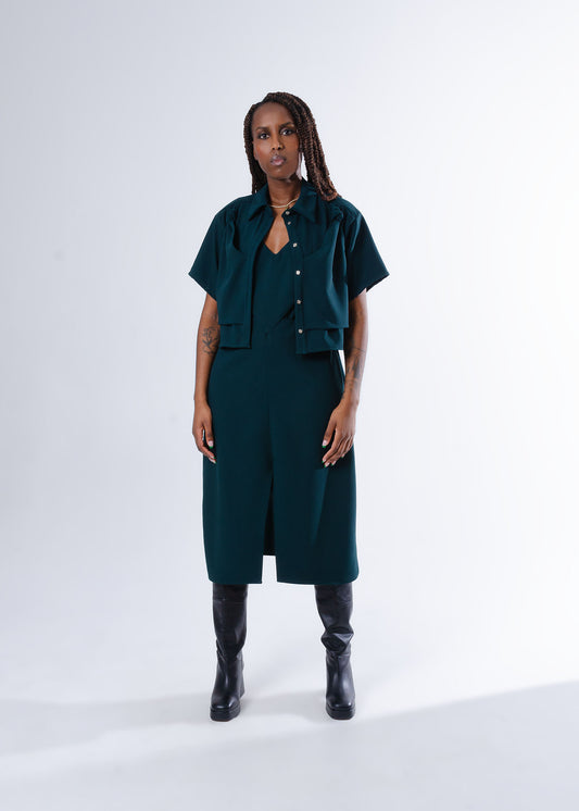 Sia A-Line Summer Dress (Forest Green Cupro)