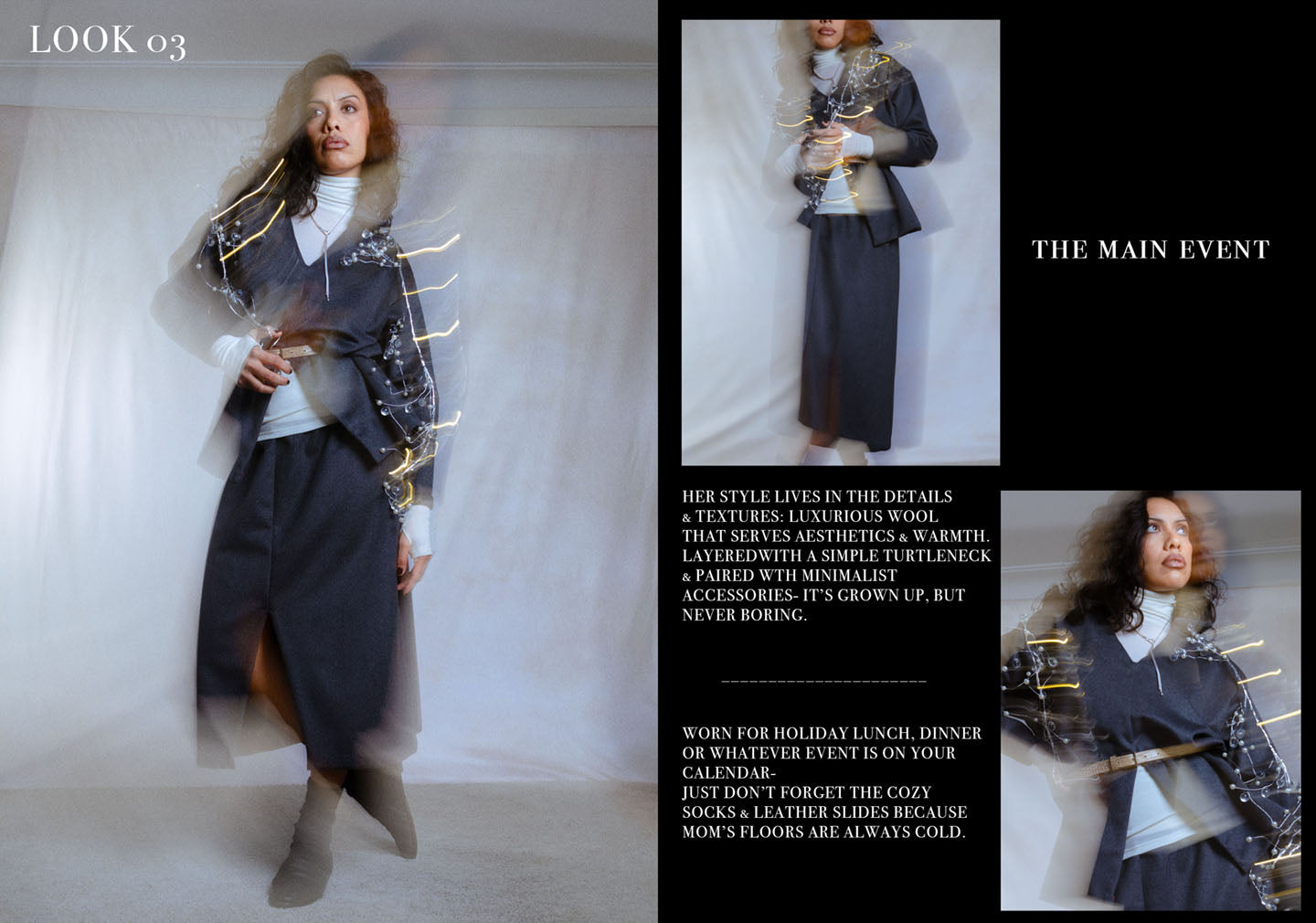 An exploration of outfits & personas shapes our newest editorial as we shift into end-of-the-year mode, shot by our founder, Andrea.