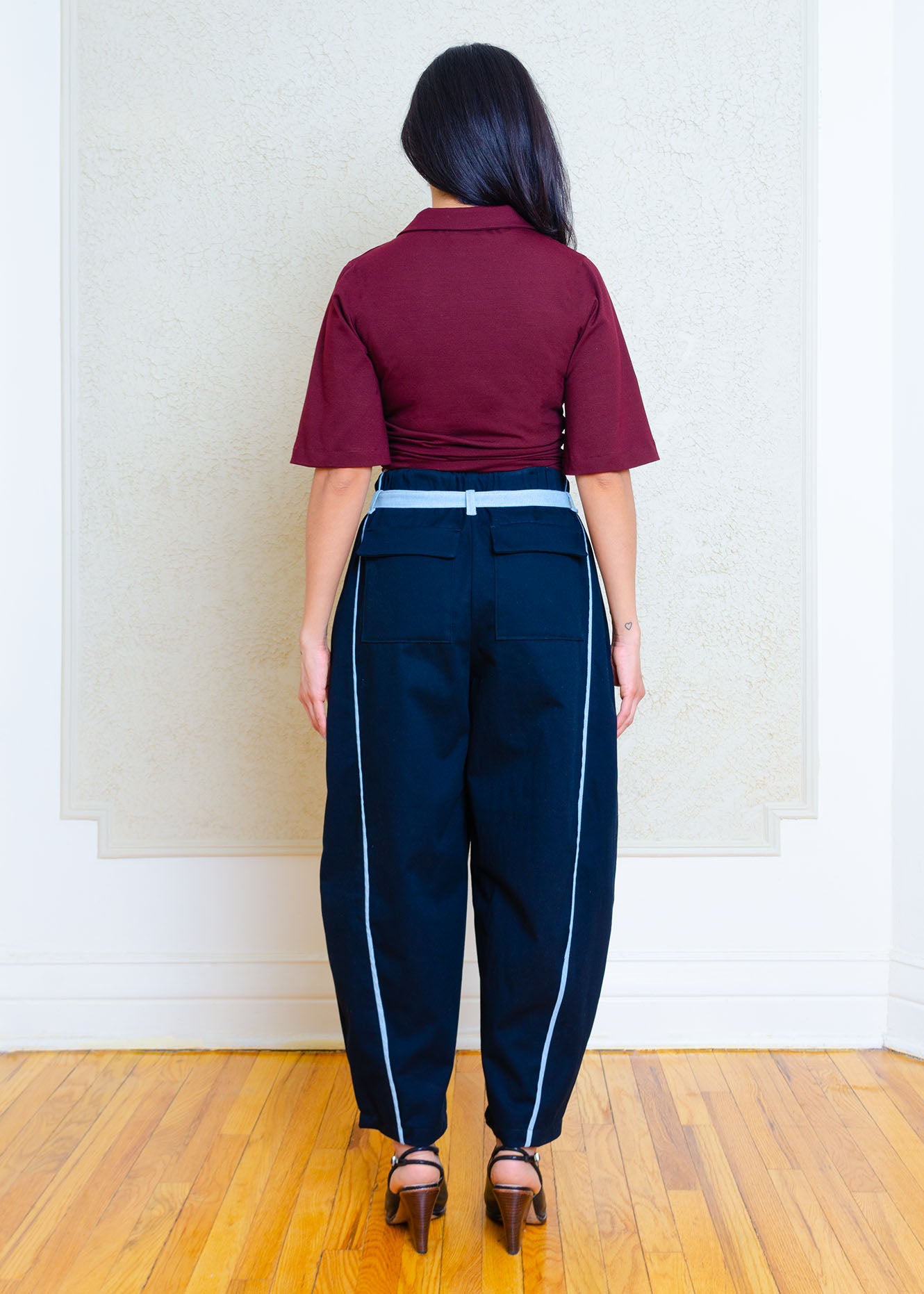 Amy Barrel Pants (Black + denim contrast)
